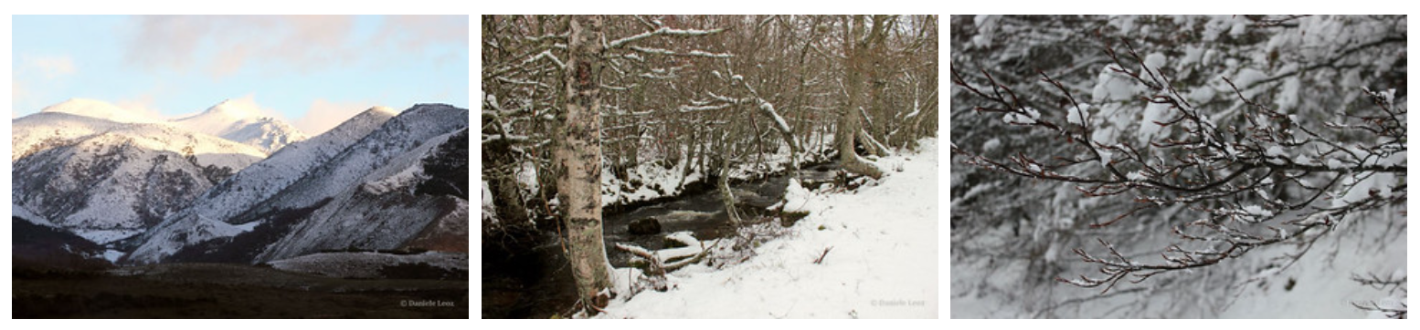 Acompañando a los pinos, aparecen hayas, serbales y abedules, que son relativamente abundantes.