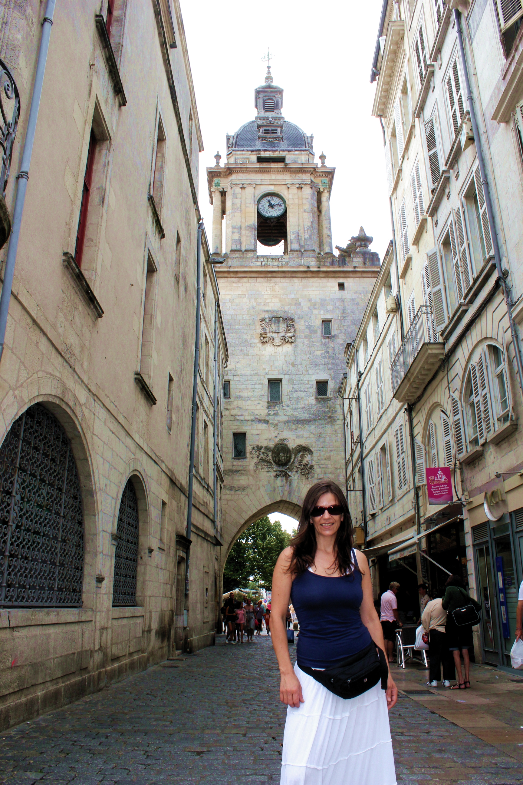 Desde el puerto viejo se accede a la ciudad vieja de La Rochelle por la puerta de la Grosse-Hologe, del siglo XIV, que en su centro alberga el campanario y el reloj.