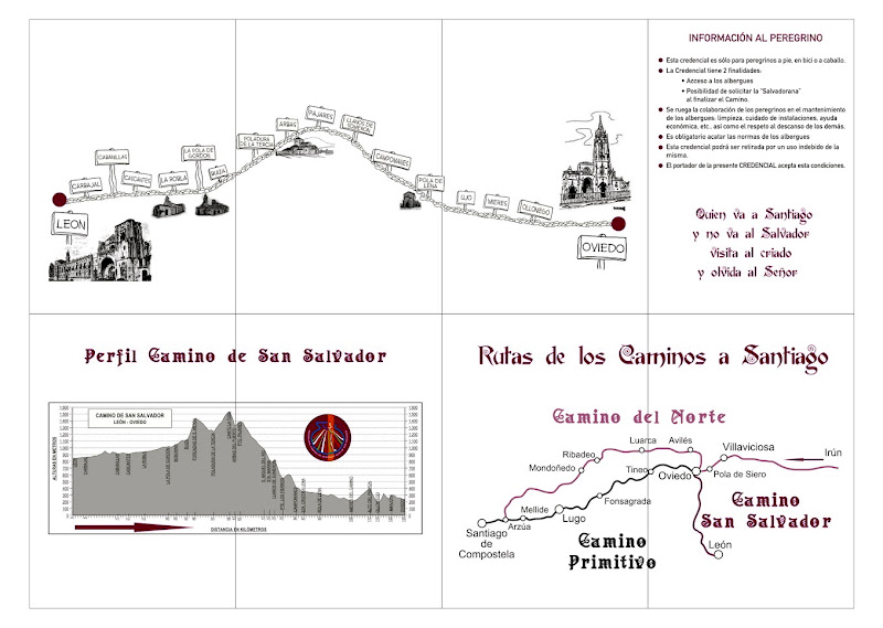 La Ruta de San Salvador tiene una extensión de aproximadamente 122 kilómetros, pasa por más de 30 localidades, entre ellas 19 poblaciones con servicios, y se puede hacer en varias etapas. Está bien señalizado con distintos tipos de indicaciones: flechas y conchas amarillas pintadas en piedras o vallas, estacas coronadas con la vieira amarilla, o bien los postes de madera verticales de Cuatro Valles.