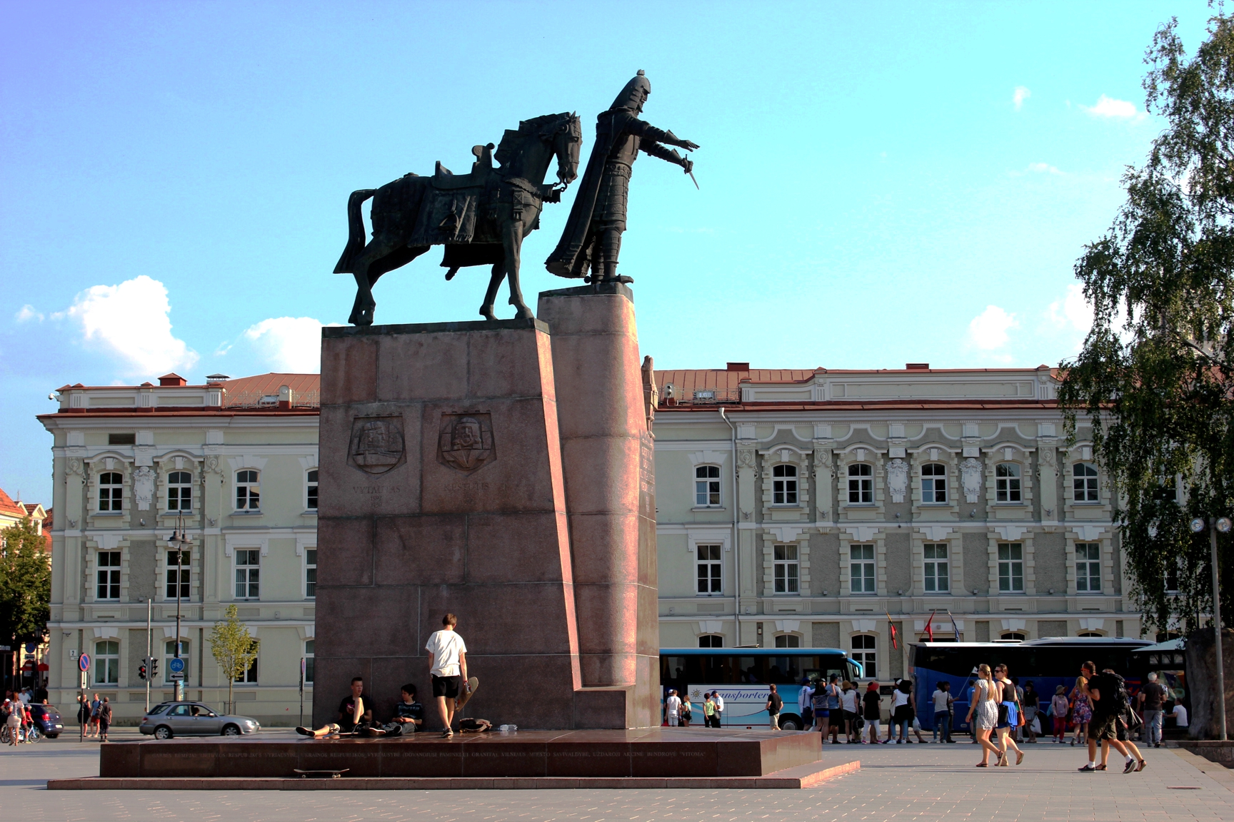 Detrás de la Catedral se encuentra el Palacio de los Grandes Duques de Lituania, reconstruido tras su demolición en el siglo XIX. Fue uno de los palacios más famosos de Europa durante los siglos XV-XVII. Actualmente tiene influencias góticas, renacentistas y barrocas. Delante del palacio podemos apreciar la Estatua del Gran Duque Gediminas.