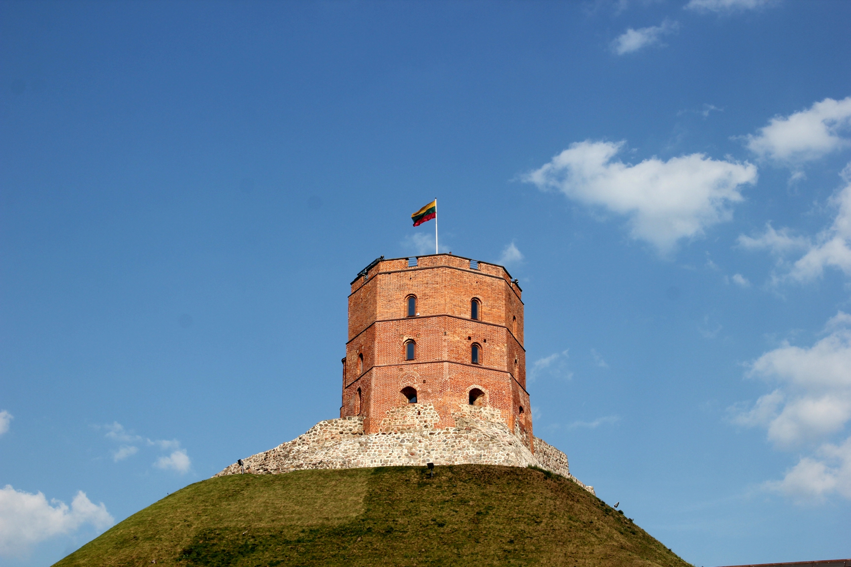 La Torre del Castillo de Gediminas se encuentra en la cima de la Colina de Gediminas y se ha convertido en una imagen emblemática tanto de Vilna como de Lituania.