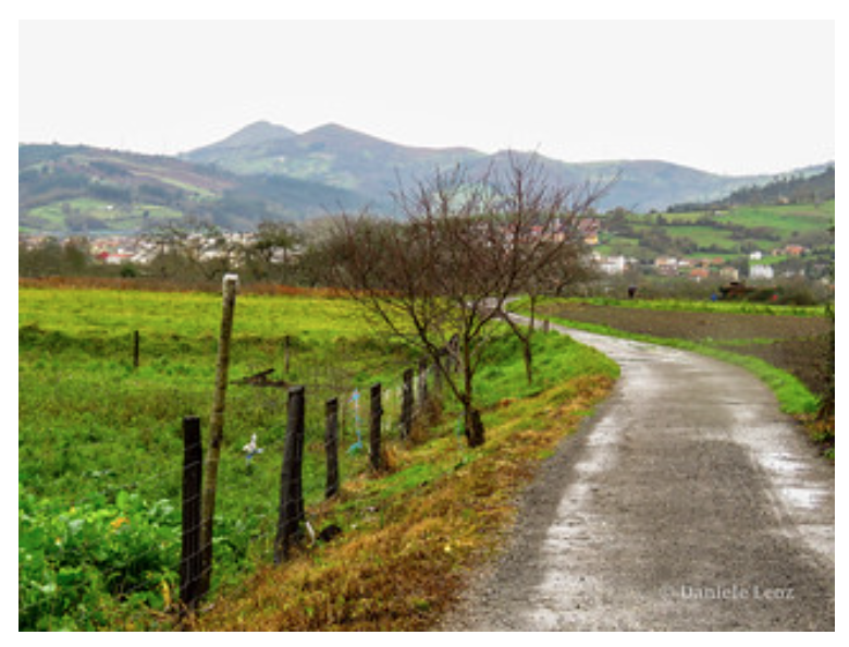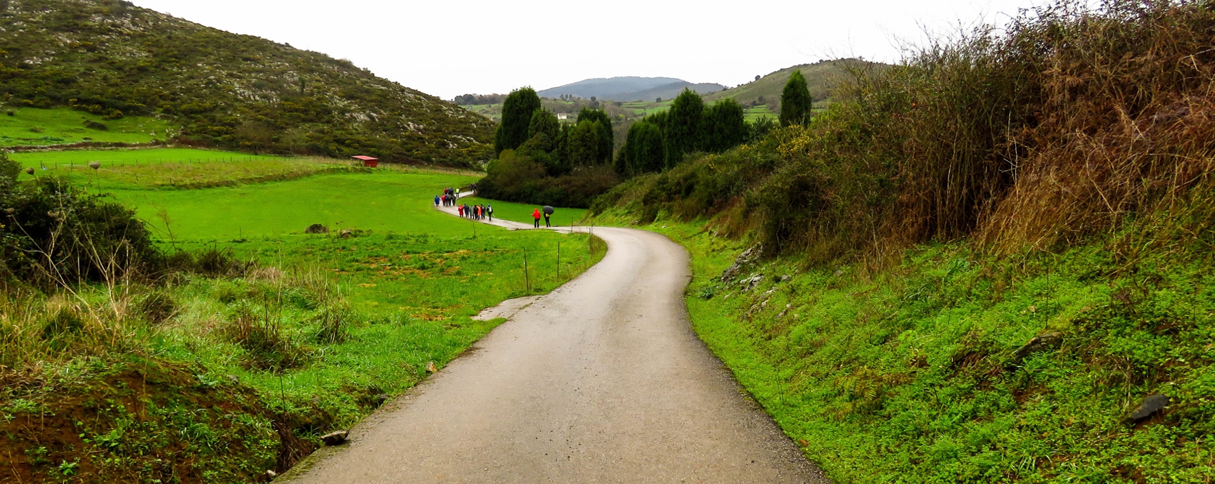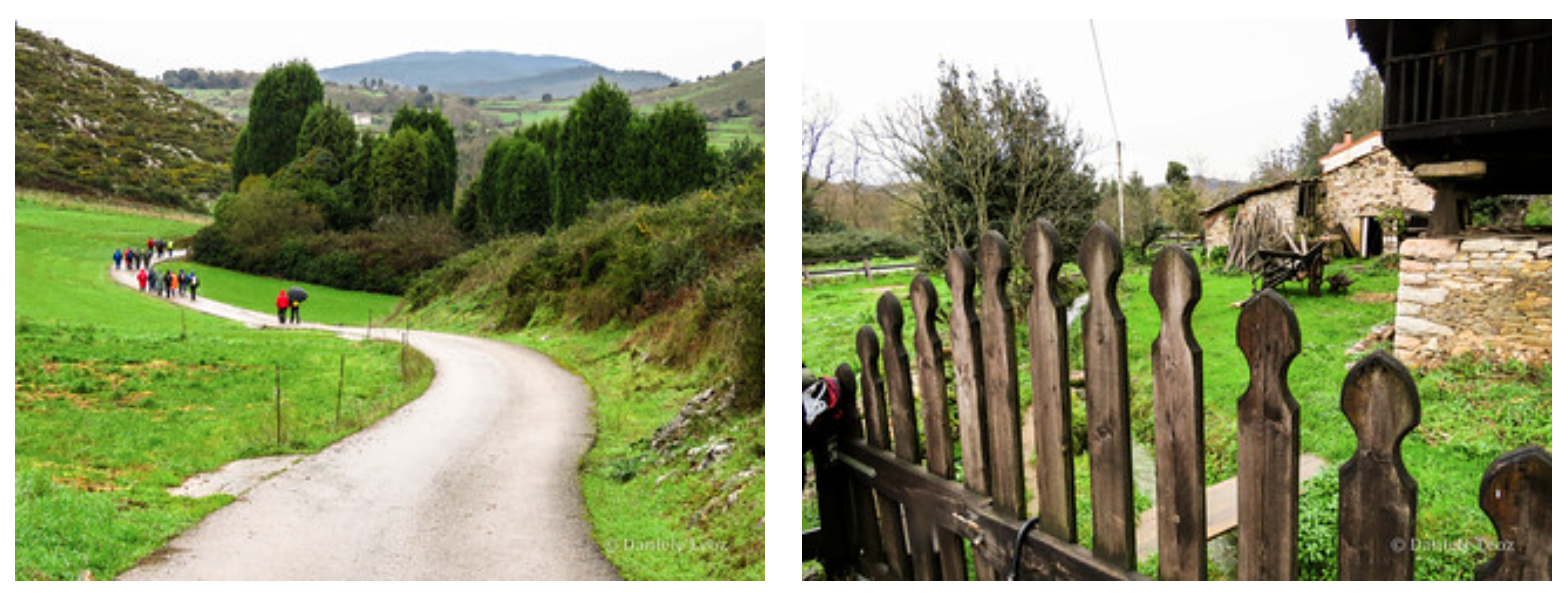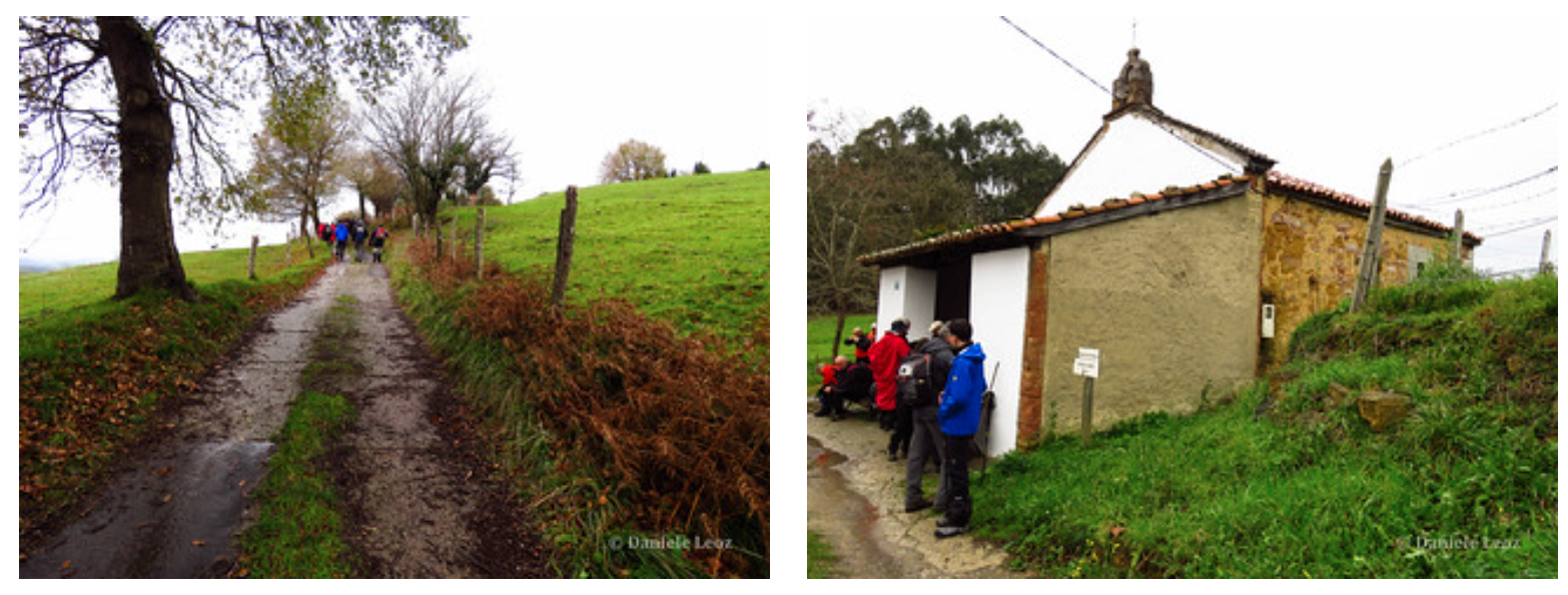 Al final de la urbanización encontramos una pequeña carretera local que asciende para dirigirse a San Lázaro de Paniceres, donde en 1331 existió una leprosería; que atravesamos sin salirnos de la calzada.