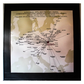 La mayoría de las personas deportadas a Auschwitz por las SS fueron llevadas en tren. En la foto aérea abajo se puede visualizar los puntos de llegada a través de estaciones y apartaderos de tren que se encontraban en el complejo de Auschwitz o en zonas cercanas.