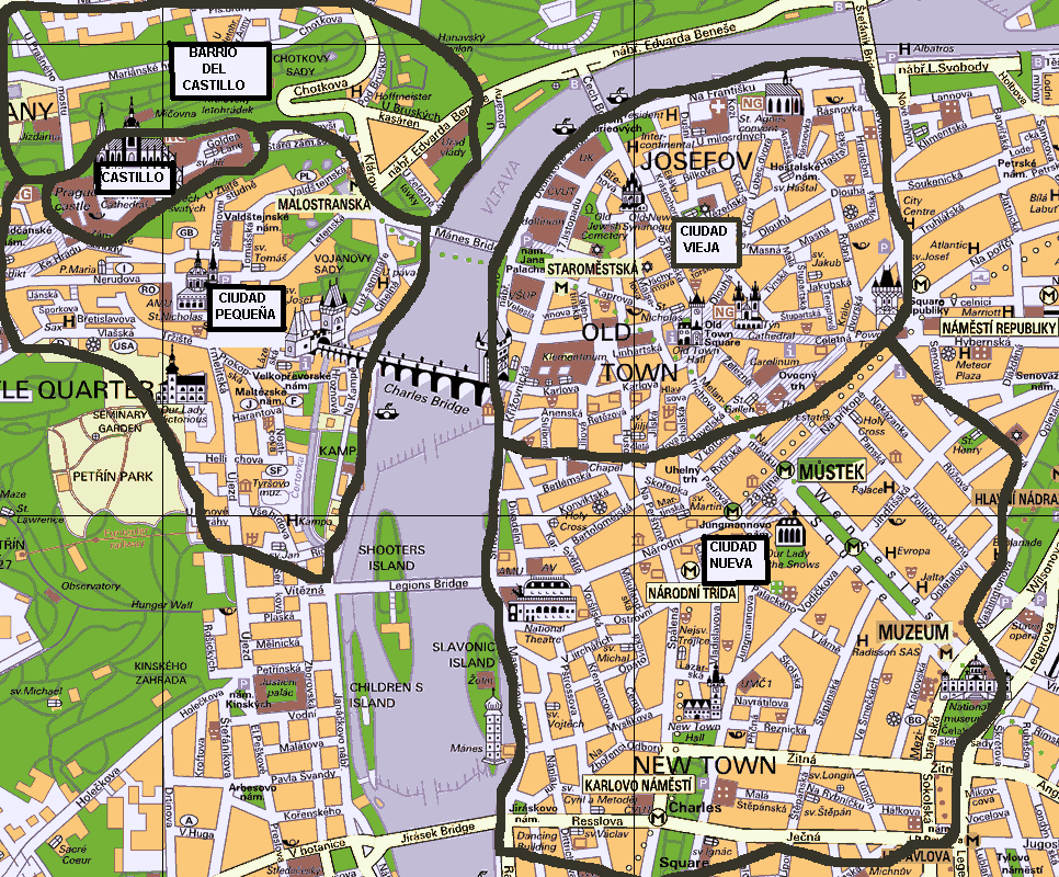 Mapa de Praga (Ciudad Vieja, Ciudad Pequeña y Ciudad Nueva)