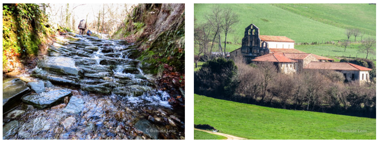 Continuamos y al poco tomamos un sendero boscoso que desciende hasta encontrar el desvío que lleva hasta el imponente monasterio de Santa María La Real de Obona, que se encuentra a tan sólo 350 metros y es de recomendable visita.
