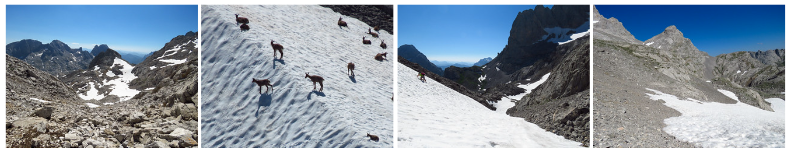 Sufrimos un montón teniendo que «escalar» alguna que otra roca caliza donde dejamos parte de nuestra manos, bajamos neveros a lo «culoesquí», cuando no había otra y subimos con mucha dificultad otros neveros, donde estaríamos mucho más cómodos si lleváramos unos piolets.
