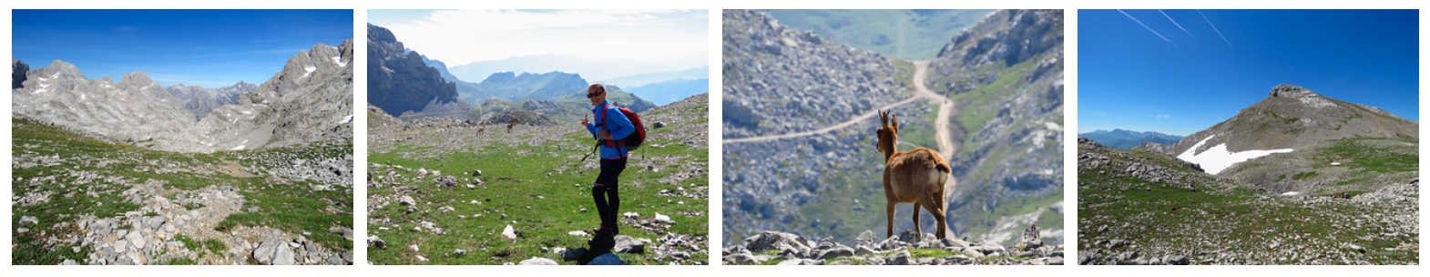 Seguimos camino pasando por el Sedo de la Padierna, la Colladina de las Nieves. Por este cómodo sendero rodeado de un manto verte y montañas de piedra caliza gris podíamos observar alucinados los altos picos y las vertiginosas cuestas nevadas que habíamos pateado el día anterior.