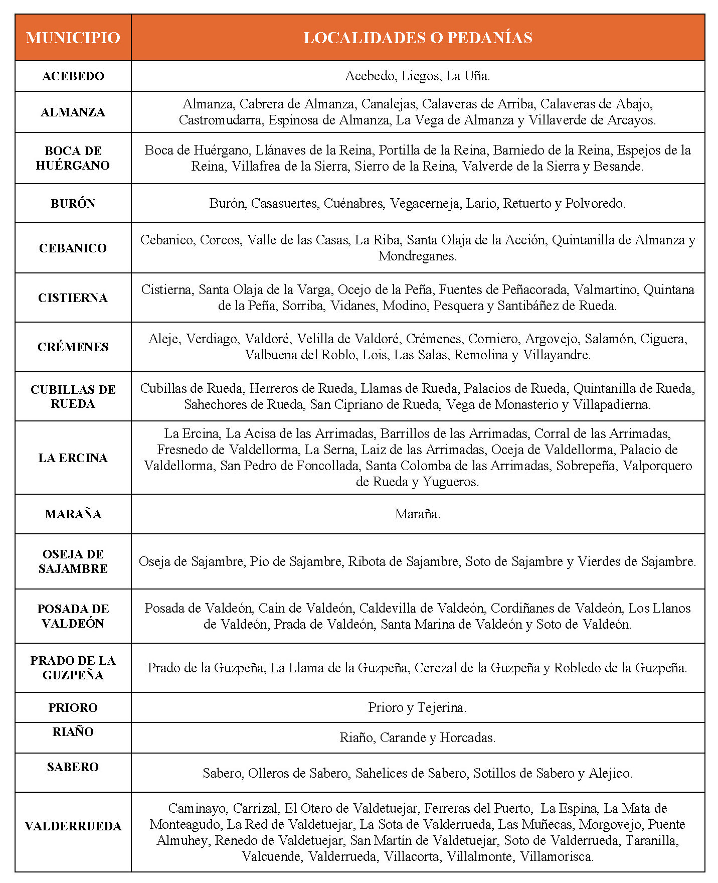 Tabla 2. Municipios, Localidades y Pedanías de la Comarca de Cistierna