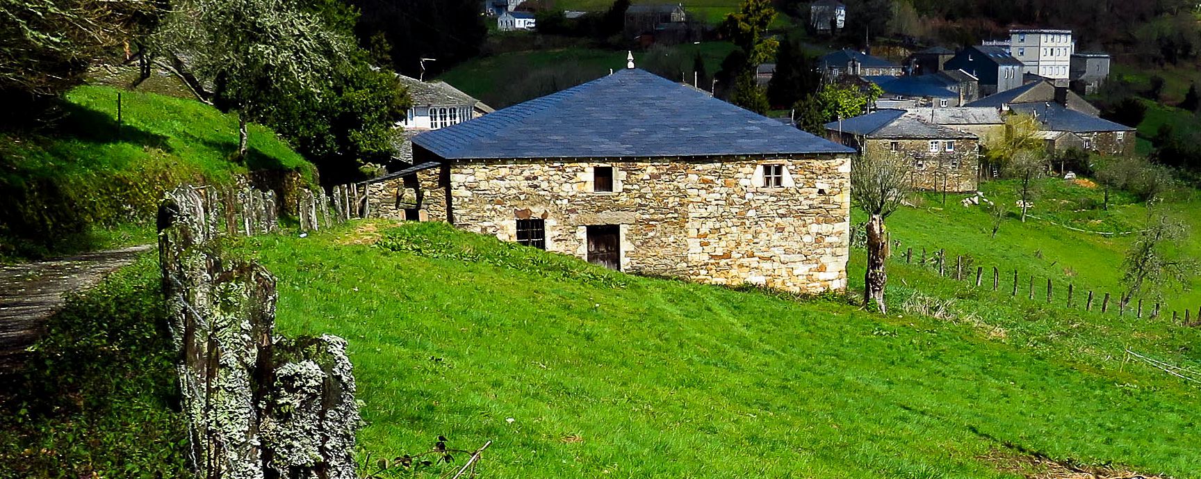 Cruzamos la carretera y nos topamos con el lugar de San Xoán de O Padrón, donde hay un albergue para los que prefieran pasar la noche por ahí. El pueblo es un encanto, con sus casas de piedra y tejado de pizarra, muy común en las zonas rurales por las cuales hemos pasado.