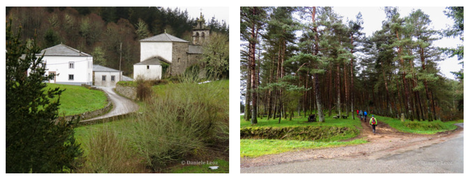 Y por si nos pareciera poca subida seguimos poco a poco ascendiendo hasta llegar al alto de Fontaneira, entre pinares y aguantando las fuerzas nos dirigimos hasta A Fontaneira. Como ya estábamos echo polvos tras tantas cuestas, nos paramos en el antiguo hospital de peregrinos para tomar aliento. En el pueblo hay un impresionante hórreo, una obra de arte en el suelo hecha de piedras y representando al peregrino y un paraje guapísimo que apreciar.