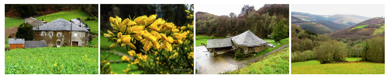 Cruzamos la carretera y, ya sin lluvia, seguimos descendiendo hasta A Calzada, y sus suculentos huertos, que dejamos a mano izquierda e inmediatamente después A Degolada, donde hay unos preciosos ejemplares de casas rurales tradicionales.