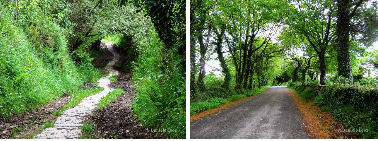 Acto seguido, giramos a la derecha, cogemos una senda con un tramo de calzada muy chula y salimos nuevamente a la LU-P-2901. En pocos metros llegamos a O Carballal, donde está el Albergue Ponte Ferreira.