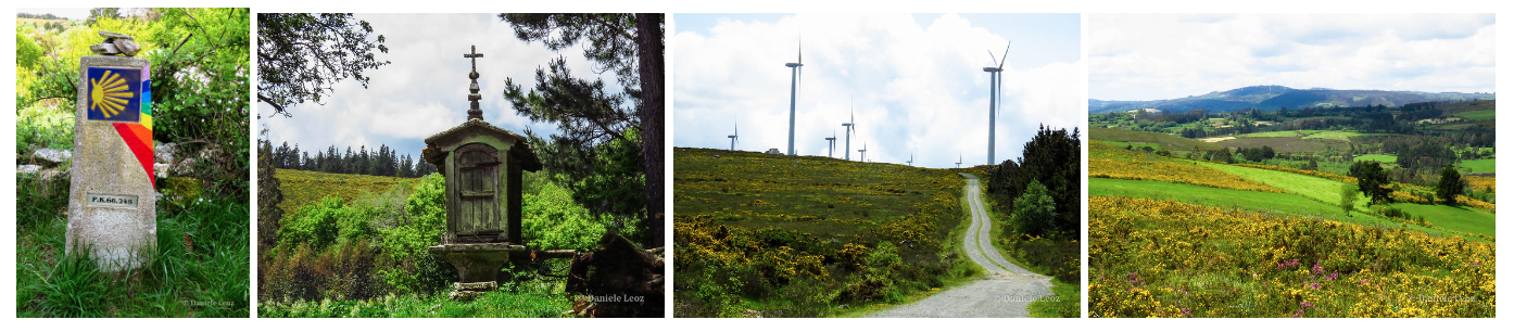Más adelante, en la bifurcación, tomamos por la izquierda para subir por una pista forestal y caminando por los Montes de As Seixas, las aldeas de Casacamiño, Paredes de Casacamiño hasta llegar a un área recreativa muy alegre y pintada con los colores del arcoíris, incluso el mojón que da paso a Hospital das Seixas.