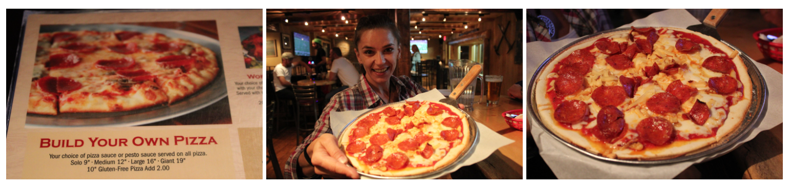 Entre los muchísimos sabores que había en el menú elegí la especial de la casa que venía con pepperoni, salchichas, champiñones y aceitunas. ¡Riquísima! Tan, pero tan buena que me comí una entera y me llevé otra para el día siguiente.