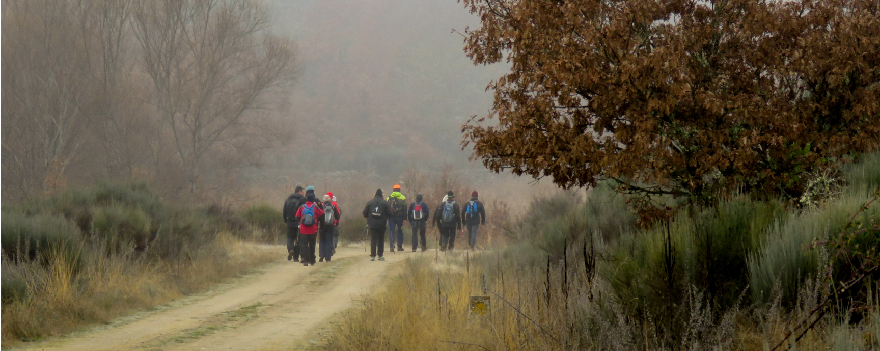 El sendero estaba rodeado de robles melojos, teníamos el suelo tapizado por un manto de hojas secas de colores otoñales que contrastaban con el azul del cielo y los trocines de verdes que se resistían al invierno. ¡Una maravilla!