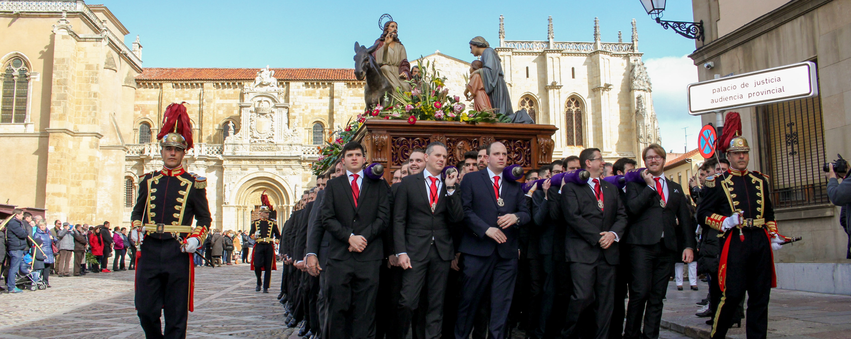 En el antiguo Ayuntamiento de León se une al cortejo la Corporación Municial. A las 12:15hs se realiza la Bendición de las Palmas en la Plaza de San Marcelo con la presencia del Obispo.