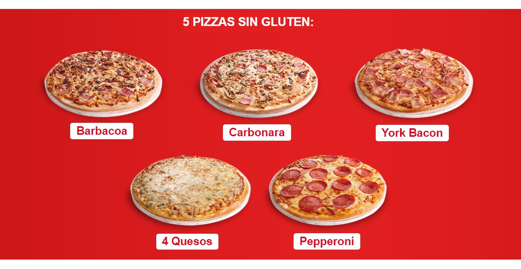 Las cinco deliciosas recetas de pizza sin gluten de Telepizza son: barbacoa, carbonara, york-bacon, 4 quesos y pepperoni, los sabores que a mí más me gustan, por cierto.
