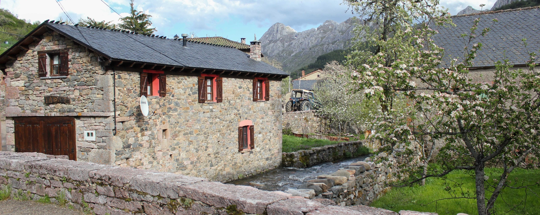 Está enclavado en la cordillera Cantábrica y sus casas, hechas de piedras, se fusionan perfectamente con su entorno envuelto por montañas y agua.