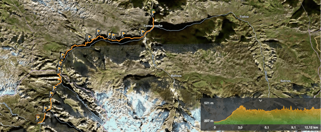 Tened en cuenta que, aunque la ruta tiene 12 kilómetros, la distancia por carretera entra Caín y Poncebos es de más de 100 kilómetros.