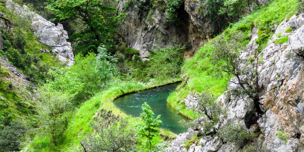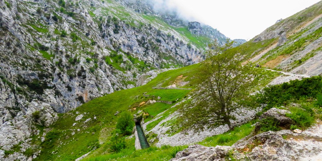 La diferencia de empezar por Poncebos es que por esta vía el tramo inicial tiene una ligera pendiente inicial de 2 km. Pero nada fuera del normal, y mejor hacerla en ascenso que en descenso, dado lo resbaladizo que de las rocas.