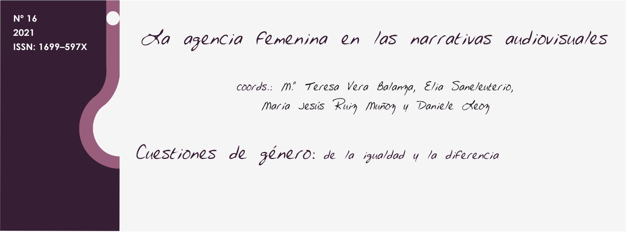 > Daniele Leoz posted: «Revista Cuestiones de Género: de la igualdad y la > diferencia, nº 16, 2021, pp: 1-11. Monográfico: La agencia femenina en las > narrativas audiovisuales Coordinadoras: M.ª Teresa Vera Balanza, Elia > Saneleuterio, María Jesús Ruiz Muñoz y Daniele Leoz. El pres» >