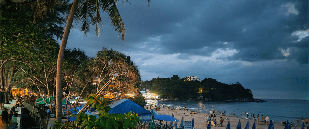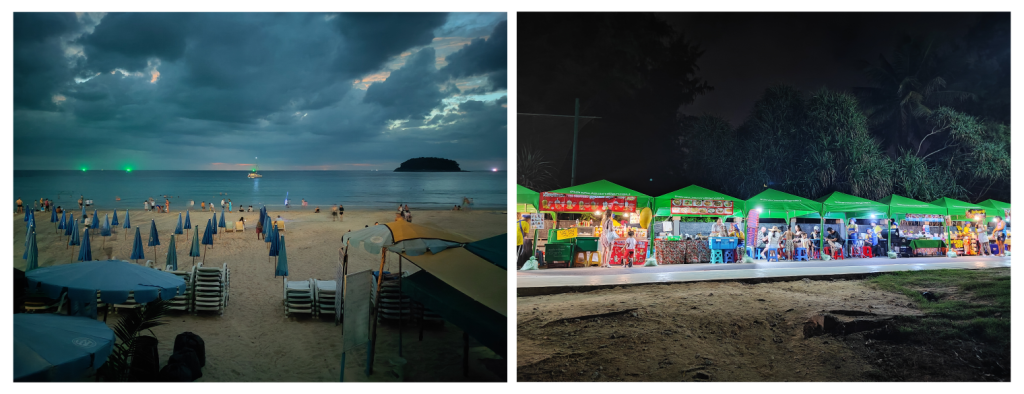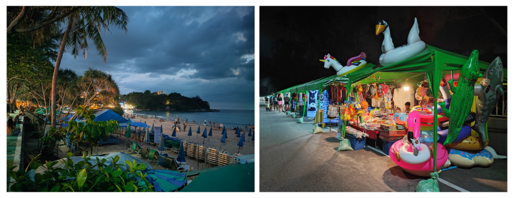 Como ejemplos, Patong es una playa muy animada, con una gran cantidad de alojamientos, tiendas, bares y restaurantes.