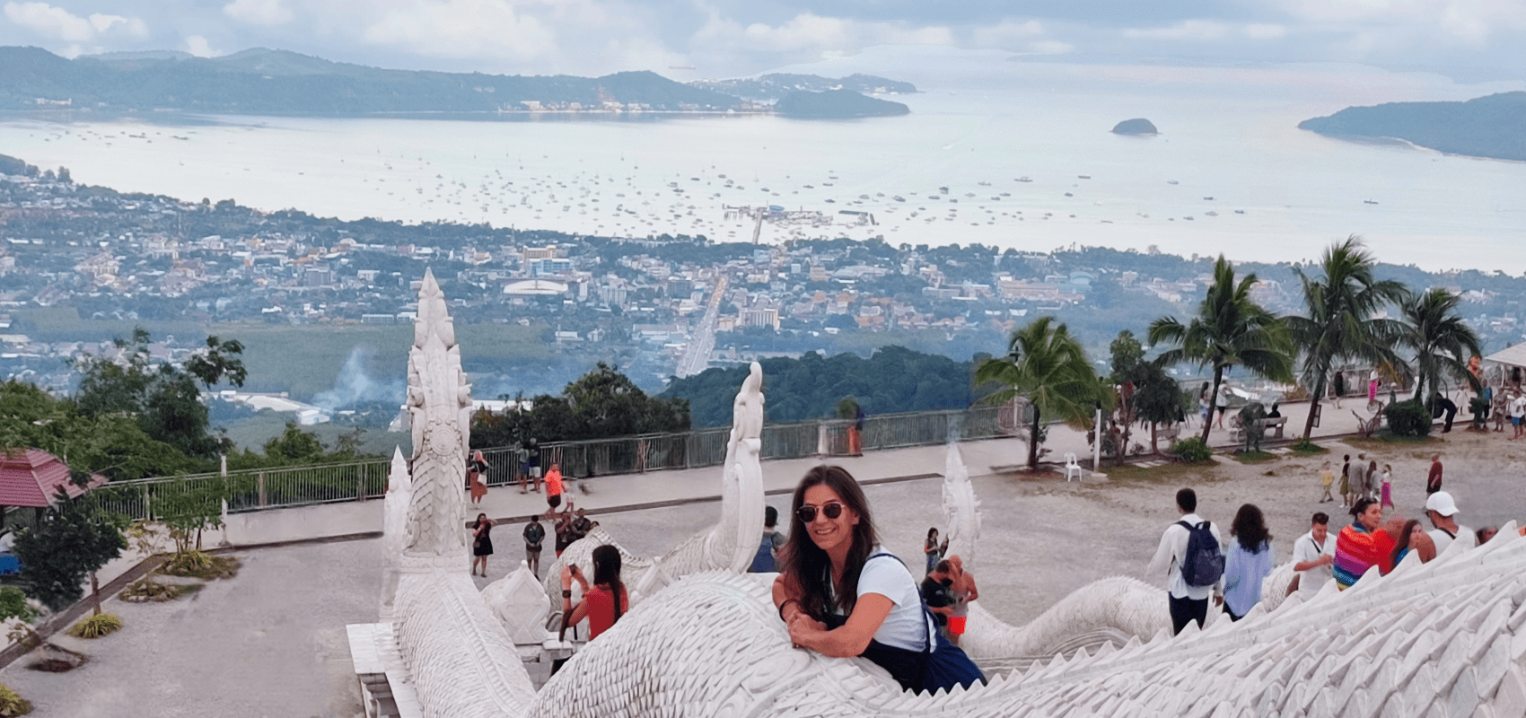 En lo alto de las colinas de Nakkerd, al noroeste de Chalong Circle, y visible desde la mitad de la isla, el Gran Buda de Phuket de alabastro birmano se alza imponente en el mejor mirador de la isla. Está ubicado frente al parque budista Nak Koet y os confieso que hemos alucinado pepinillos con la grandiosidad de la figura.
