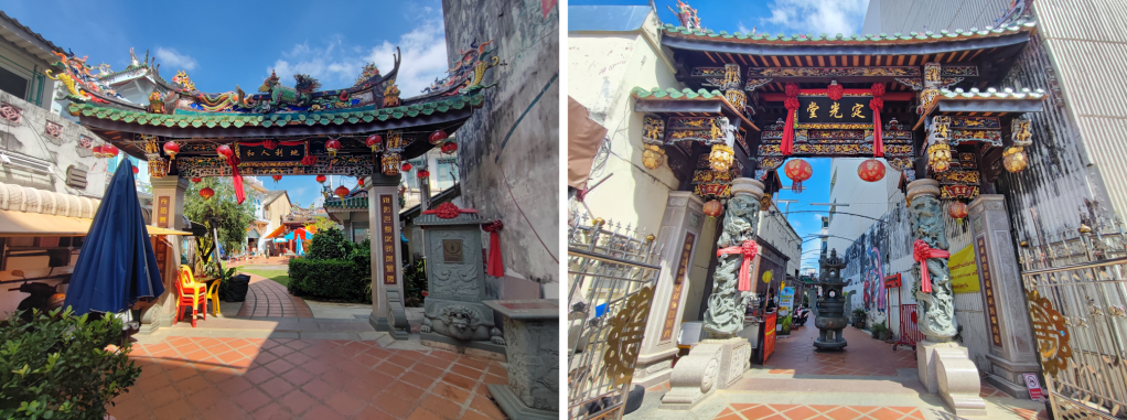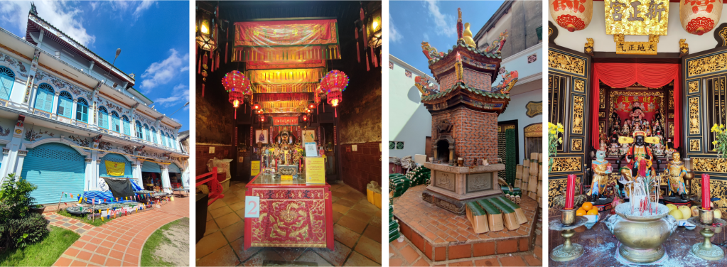 En cuanto al santuario en sí, hay pinturas con un patrón de líneas negras dentro de los cuadrados de dos lados de la pared, que representan la leyenda de «Xue Rengui» en la dinastía Tang, cuando la deidad Ong Sun Tai Sai nació como humana.