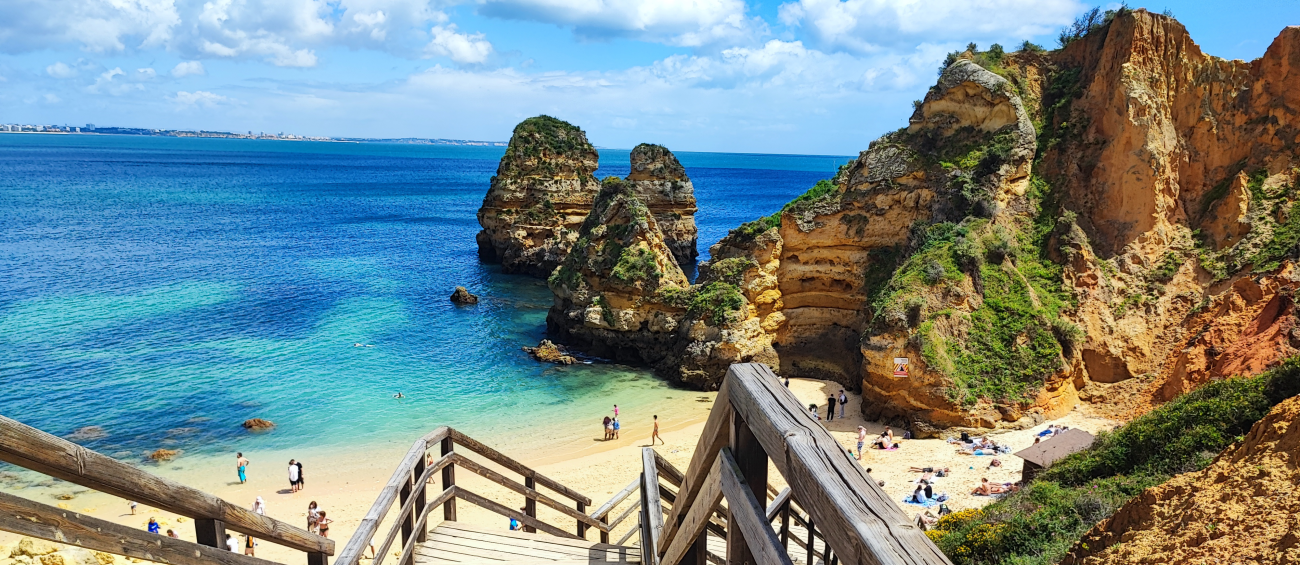 Ubicada a pocos kilómetros de Lagos, y de muy fácil acceso, la Ponta da Piedade es un destino imperdible para las personas que estén de visita al Algarve. Esta formación rocosa es de una belleza indescriptible. Sus acantilados con formas esculturales se sumergen en el mar turquesa componiendo un paisaje idílico e digno de visitarse.
