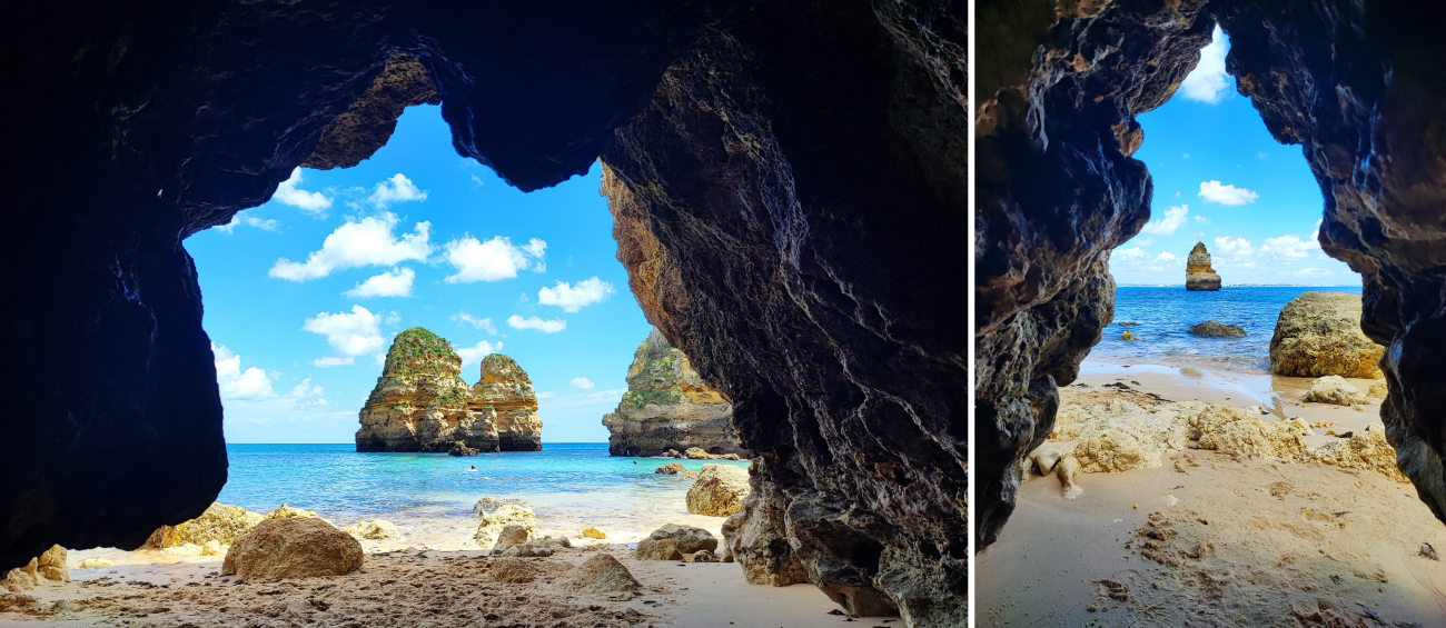 También se puede llegar caminando, unos 45 minutos desde Lagos, a través de la Ruta geológico-paisajística de Ponta da Piedade (más detalles al final del artículo). Otras opciones son en bici, kayak o en barco. Hay varios tours desde el puerto de Lagos que incluyen visitas guiadas a las grutas.