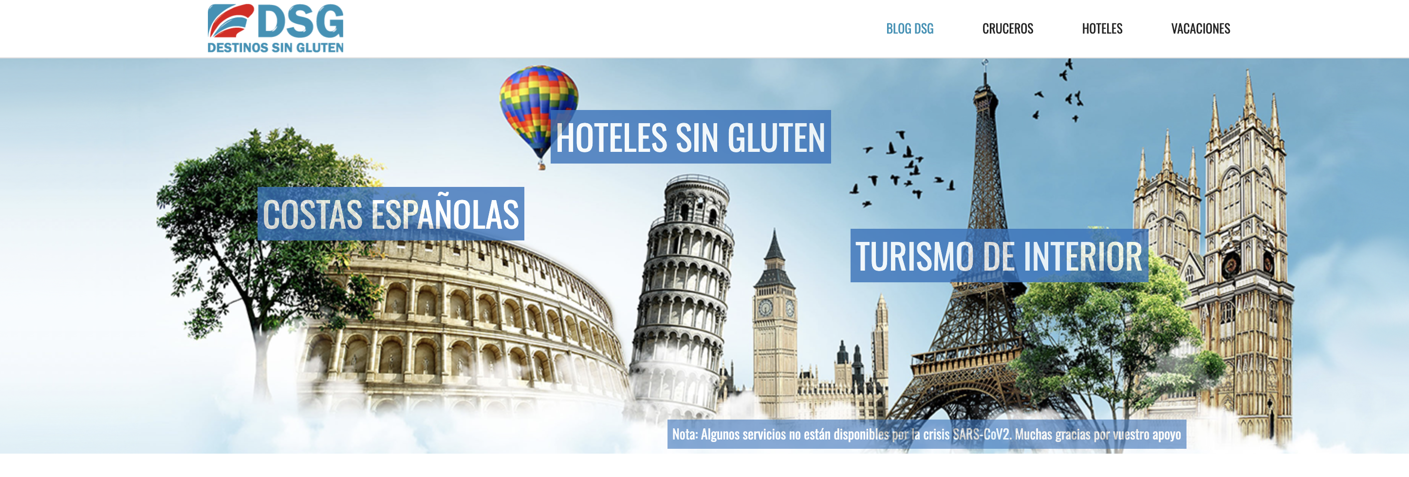Ofrece desde un fin de semana romántico y “gourmet” sin gluten, hasta una vuelta al mundo; pasando por unas agradables vacaciones en familia en una isla paradisíaca, un crucero por cualquier parte del mundo, o una aventura cultural en la ciudad europea de tu elección. Su sello «Con Garantía de Destinos Sin Gluten» aparece ya en ciento de establecimiento colaboradores. El emblema garantiza que las materias primas, los productos utilizados y/o comercializados por el establecimiento, y los procedimientos empleados; cumplen con las más estrictas normas de manipulación y almacenamiento para preservar la calidad higiénica y alimentaria.