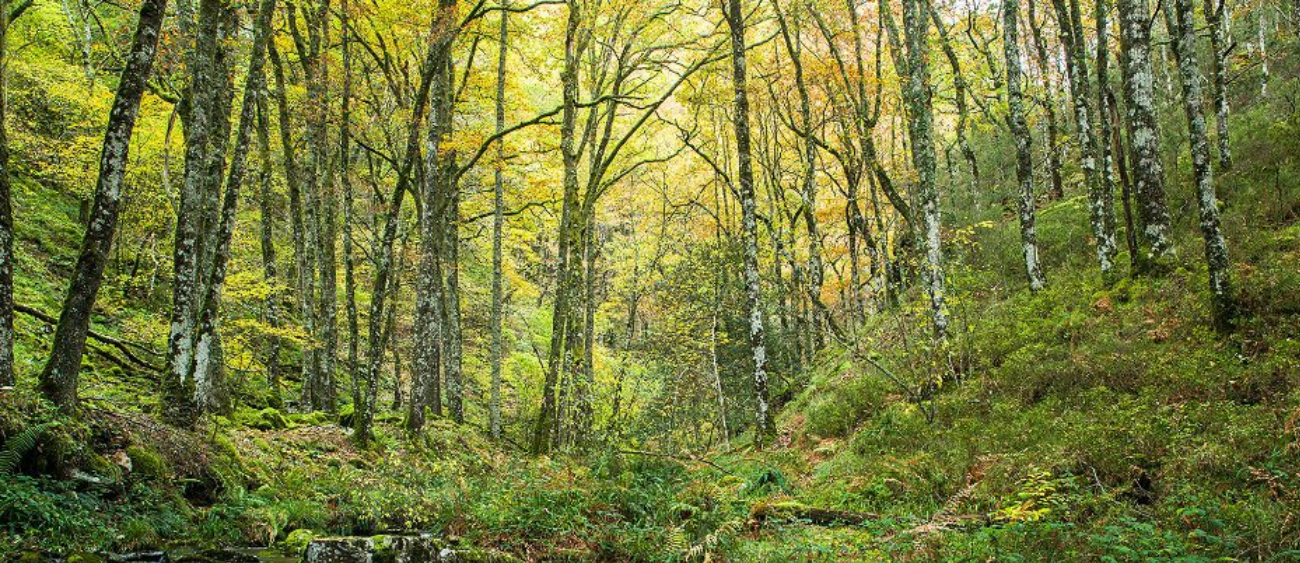 El entorno natural que rodea a Os Esquíos es precioso. Las laderas están cubiertas de bosques caducifolios, donde robles, castaños y hayas crean un dosel verde que cambia de tonalidad con las estaciones.